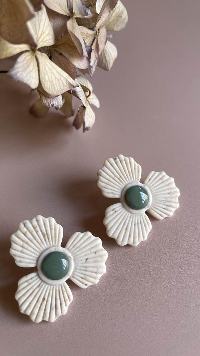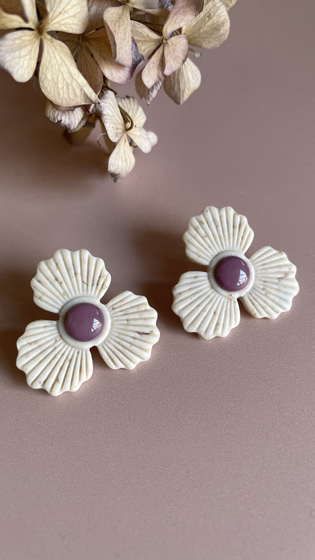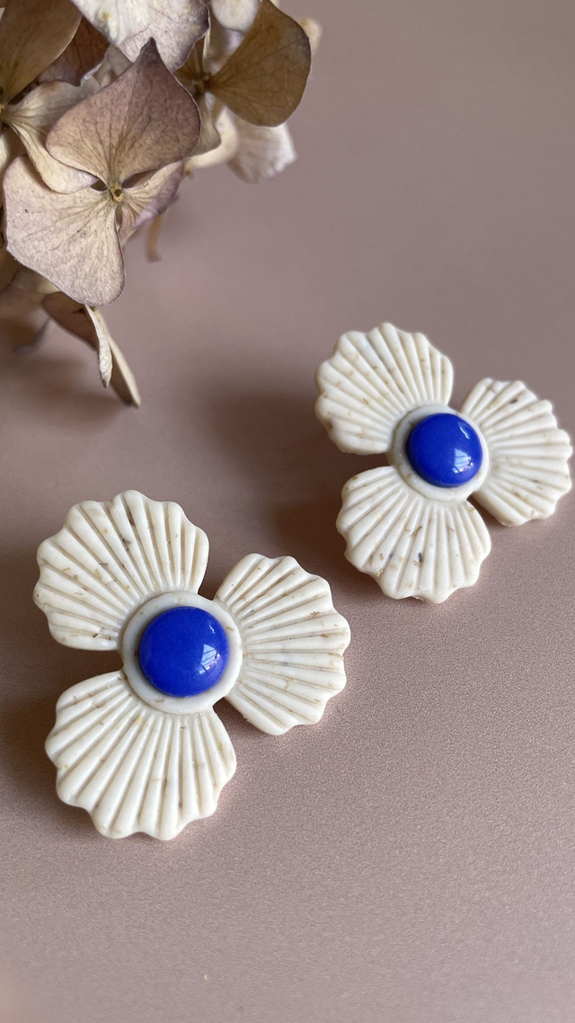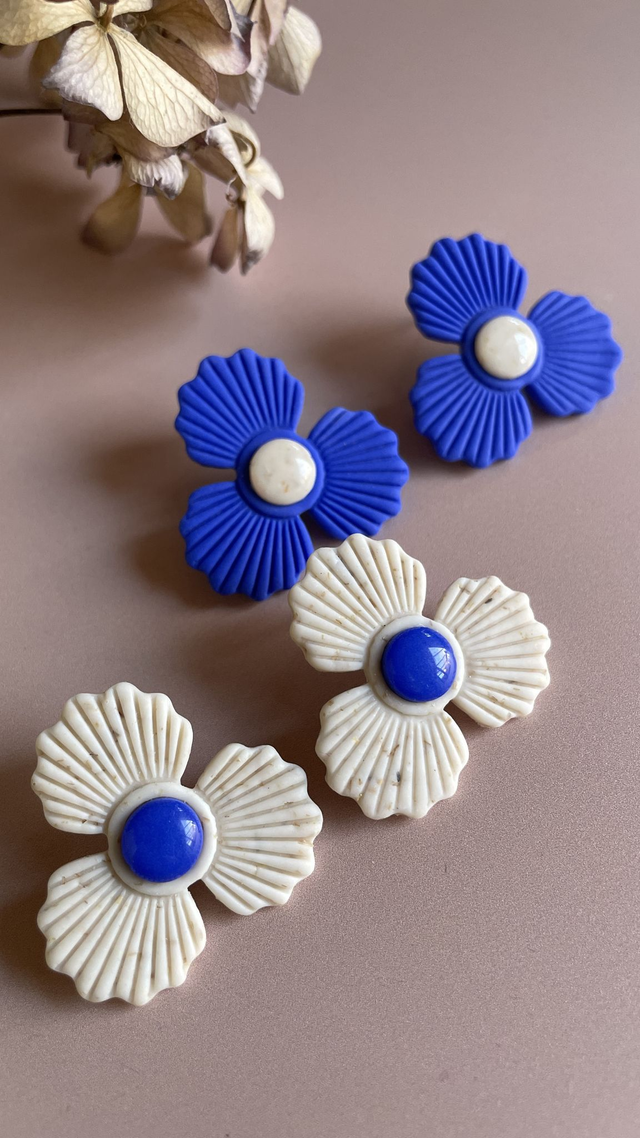 Avec leurs pétales finement nervurés et leur cœur bombé recouvert de résine brillante, les boucles Gaston célèbrent l’élégance des formes simples et la douceur florale. Chaque paire est minutieusement façonnée à la main en argile polymère, rendant chaque bijou unique.