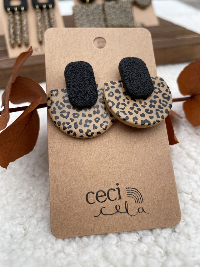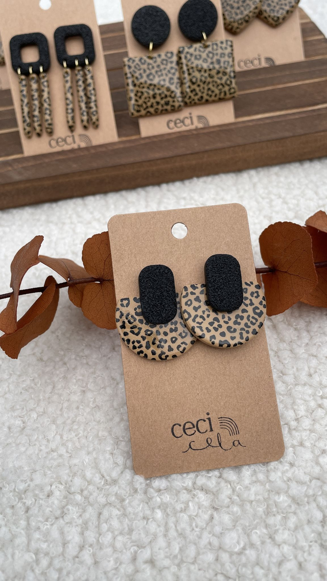 Puce ovale noire texturée sur pièce léopard vernis brillant