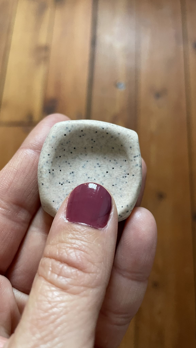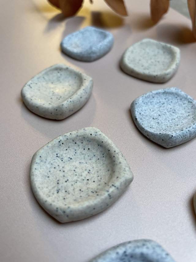 Modelée à la main en argile polymère, la Worry Stone se glisse dans la paume de la main. Sa forme douce et creusée épouse naturellement les doigts pour offrir un geste réconfortant et apaisant.